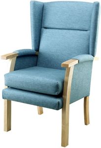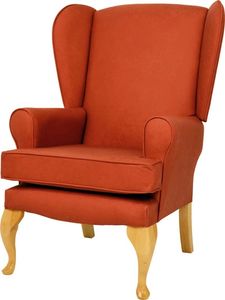 A change from the traditional fire side chair, with a detailed back and modern shaped wings.